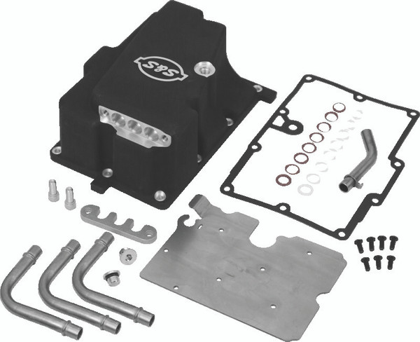 The new S&S oil line kit includes a special transmission oil pan and stainless steel hard lines, making hook-up straightforward and attractive.