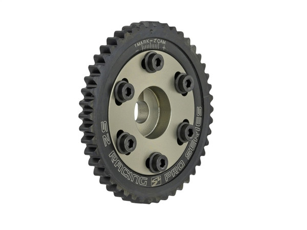 An engine's camshafts must be set at their proper positions relative to the crankshaft in order to maximize horsepower. The Pro Series Exhaust Cam Gear for Hondas K-series engines enables serious tuners to optimize horsepower and torque by being able to further adjust camshaft timing, allowing them to tailor the power curve appropriately. Thanks to laser-etched timing and directional marks, precise camshaft adjustments can be made quickly and easily. Pro Series Cam Gears feature precision-machined, hard-anodized steel teeth to reduce premature wear with a signature, six-bolt design that eliminates gear slipping. Skunk2's lightweight design and CNC-machined, 7075-T6 billet aluminum construction reduces rotational inertia, resulting in increased engine response and acceleration. Skunk2's adjustable cam gears have also been proven on race cars in the most extreme conditions for more than a decade.