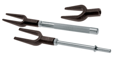 This master balljoint separator set from SPC is a must for any technician replacing balljoints, control arms, or tie rod ends on today's car and SUV's. With 4 different opening sizes ( 24mm, 27mm, 31mm, 36mm ) a threaded height adjustment and 2 different sized forcing screws, this 7 piece set is the most versitile on the market. From a Jeep tie rod end to a BMW X5 rear upper control arm, this set has you covered. This set comes in a convenient blow molded case to help you keep track of your tools. California Residents WARNING