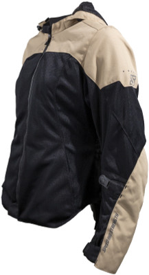 The Starstruck™ textile motorcycle jacket features a Combined Fierce™ mesh and AR-600 ripstop outer shell with removable Vault™ C.E. approved shoulder and elbow protectors, and a removable Vault™ C.E. spine protector. For added comfort, the jacket includes an elasticized ruched waist and zippered hip gussets.