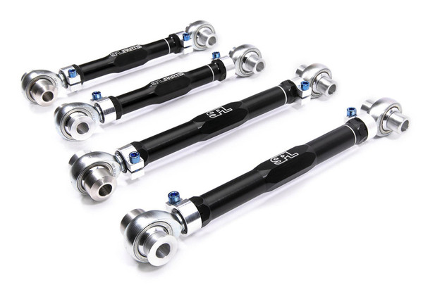 BMW F2X/F3X Series Rear Upper Arms (RUA) greatly increase the range of rear camber adjustment for high performance track/street applications and are a must for lowered cars to meet alignment requirements. The adjustment range provided by the eccentric washer on the OEM control arm is insufficient to get camber back into proper spec. Our Rear Upper Links feature gun drilled 2024 Aluminum center links, clamps, and clevises, along with Blue Anodized Titanium socket head cap screws and our 360 degree rotating clamp system. This combination provides superior strength, performance, durability, and ease of adjustment. Long gone are the days of fumbling with wrenches to tighten jam nuts while trying to trying to keep your bearings oriented correctly. A simple 3/16" allen key is all that is required to lock down your alignment settings! FK Spherical Rod Ends eliminate the soft worn out bushings on the stock links to reduce alignment change in the rear suspension under hard cornering, acceleration and braking. They feature a Teflon liner to provide quiet operation, low friction, smooth articulation, and eliminates bushing deflection under load. The PTFE liner is chemically bonded to the inner diameter of the race. The liner offers a very high load carrying capacity and has greatly increased dynamic wear characteristics. The operating temperatures of the liner ranges from -65º