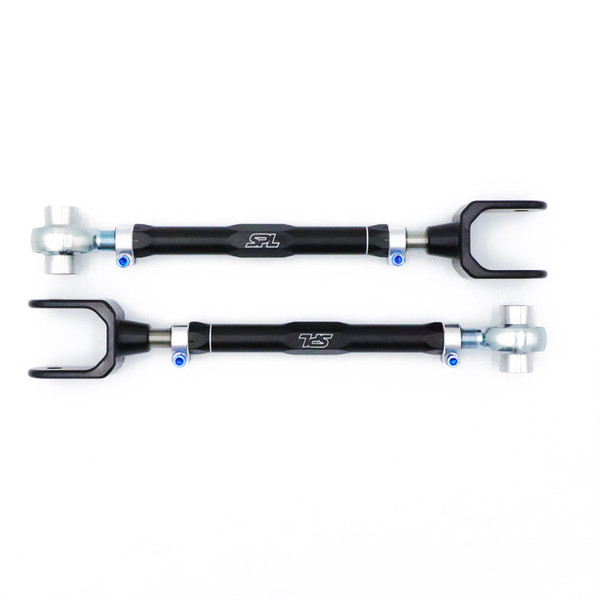 Our SPL Parts Rear Traction Rods (RTR) eliminate the mushy rubber bushings on the stock links to reduce toe change in the rear suspension under hard acceleration/braking and when going over bumps. This provides more stability and predictability to the rear suspension for tighter handling. Our traction links are length adjustable to allow the rear suspension bumpsteer characteristics to be adjusted and tuned to your exact requirements.SPL Parts Traction Arms for the V37 Q50nd Q60 feature ultra light construction: Billet 6061-T6 Aluminum bodies with our exclusive 4130 Chromoly Double Adjuster, which offers quick and precise adjustment for accurate alignment, and is also CNC gun drilled to reduce weight. Combined with Blue Anodized Titanium hardware, our traction arms are the lightest adjustable arms on the market.FK Rod Ends manufactured in Connecticut feature a Teflon liner to provide quiet operation, low friction, smooth articulation, and eliminates bushing deflection under load. The PTFE liner is chemically bonded to the inner diameter of the race. The liner offers a very high load carrying capacity and has greatly increased dynamic wear characteristics. The operating temperatures of the liner ranges from -65º