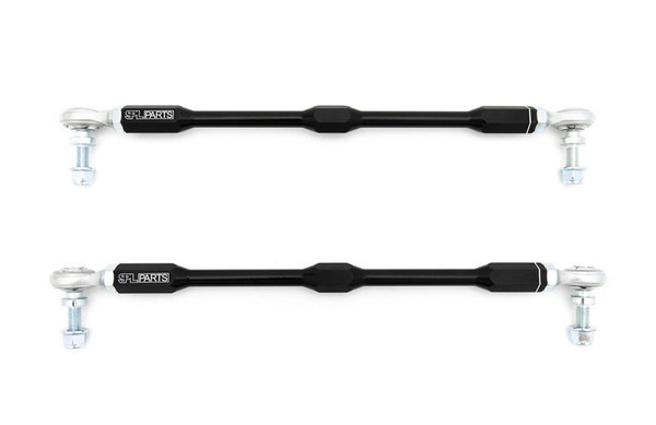 SPL adjustable front endlinks (FE) for the 2020+ Toyota GR Supra and 2019+ BMW Z4 feature massive Teflon lined FK 1/2" bearings to provide the highest load capacity for use with stiffer aftermarket sway bars. Custom heat treated Chromoly High Misalignment Studs connect to the sway bar and offer extreme articulation capability (65°) to prevent the endlink from binding when used with different adjustment holes on aftermarket sway bars. Our Endlinks are length adjustable to eliminate preload on the sway bars, which can result from uneven settling of springs or uneven suspension heights from corner weighting. Black Anodized 6061-T6 Aluminum Turnbuckles work in conjunction with the left and right hand threaded rod ends for simple and precise adjustment. These endlinks are perfect for street or race applications. Please note that if you have changed your OEM shocks with aftermarket shocks or coilovers, the mounting location may have moved. Please check the distance between the swaybar and the shock mount, and confirm that it is still OEM Length. If it does not fall within this range, please call or email us with the distance required to find you the proper part. SPL cannot confirm fitment with aftermarket shocks and coilovers.Sold as a pair.Made in the USA.