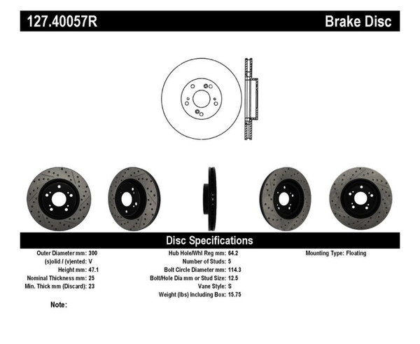 StopTech Drilled and Slotted Sport Rotors are 1-piece direct replacement brake discs for factory brake systems and stock calipers that look great behind your wheels – and offer significantly improved braking performance. The unique cross-drilling and slotting aids with heat and brake dust dispersal; prevents glazing of the pads; adds bite and improves wet and dry braking performance. Built to last; the black e-coating provides protection from corrosion and the high carbon metallurgy (in most applications) offers quieter operation; better crack resistance and increased performance.