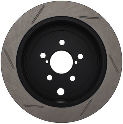 StopTech Slotted Sport Rotors are 1-piece direct replacement brake discs for factory brake systems and stock calipers that look great behind your wheels – and offer significantly improved braking performance. The unique slotting aids with heat and brake dust dispersal; prevents glazing of the pads; adds bite and improves wet and dry braking performance. Built to last; the black e-coating provides protection from corrosion and the high carbon metallurgy (in most applications) offers quieter operation; better crack resistance and increased performance.