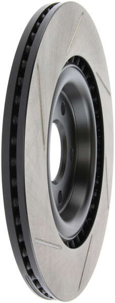 StopTech Slotted Sport Rotors are 1-piece direct replacement brake discs for factory brake systems and stock calipers that look great behind your wheels – and offer significantly improved braking performance. The unique slotting aids with heat and brake dust dispersal; prevents glazing of the pads; adds bite and improves wet and dry braking performance. Built to last; the black e-coating provides protection from corrosion and the high carbon metallurgy (in most applications) offers quieter operation; better crack resistance and increased performance.