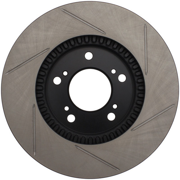 StopTech Slotted Sport Rotors are 1-piece direct replacement brake discs for factory brake systems and stock calipers that look great behind your wheels – and offer significantly improved braking performance. The unique slotting aids with heat and brake dust dispersal; prevents glazing of the pads; adds bite and improves wet and dry braking performance. Built to last; the black e-coating provides protection from corrosion and the high carbon metallurgy (in most applications) offers quieter operation; better crack resistance and increased performance.