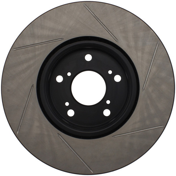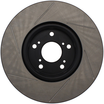 StopTech Slotted Sport Rotors are 1-piece direct replacement brake discs for factory brake systems and stock calipers that look great behind your wheels – and offer significantly improved braking performance. The unique slotting aids with heat and brake dust dispersal; prevents glazing of the pads; adds bite and improves wet and dry braking performance. Built to last; the black e-coating provides protection from corrosion and the high carbon metallurgy (in most applications) offers quieter operation; better crack resistance and increased performance.