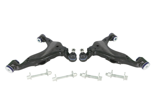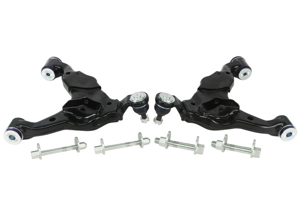 The SuperPro Complete Lower Control Arm Kit will overcome the repair problems associated with seized lower inner camber bolts, worn ball joints and replacing the bushes. TRC481 - Standard Replacement Two Complete Arm Assemblies All SuperPro Bushings pre-installed Up-rated Ball Joints Improved Quality replacement Camber Bolts Fits Vehicles WITHOUT KDSS Only The perfect replacement for your worn ball joints, worn bushes and seized camber pins!