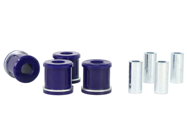 Control arm bushes stabilize the movement of the arms to ensure the correct geometry is maintained in all situations. Worn or rubber bushes in these locations lead to dynamic changes in wheel alignment that effect the handling of a vehicle as well as the tire life. SuperPro Bushings solve this issue and are the perfect repair or repair upgrade solution.