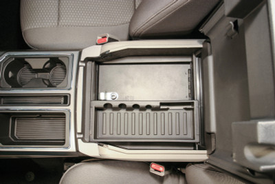 This fully enclosed 16 gauge steel console safe adds lockable storage and convenience to the unsecure factory console. It provides a comfortable and durable armrest while keeping the original factory drink holder. The unique design allows the driver side fold-down armrest to still be used. Console Safe features an internal storage tray to keep smaller items in as well as an external storage tray which is perfect for storing sunglasses and other loose items. Security is provided by Tuffy’s patented Pry-Guard II Locking system which features a 10 tumbler double bitted lock and heavy-duty latch.