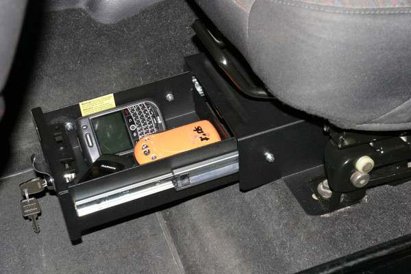 This high security welded steel security drawer mounts under the drivers side seat in a Jeep TJ & LJ (With Flip Seat). The formfitting design of the Tuffy lockbox has over 128 cubic inches of lockable storage. It’s secured contents are easily accessed by maneuvering the drawer open and closed on the smooth ball bearing slides using the convenient pull lever. Featuring Tuffy’s Pry-Guard Locking System with a 10 tumbler double bitted security lock with built in weather seals. The design incorporates a heavy duty fully extending slide system, weather seal & welded construction. A formed rib in the enclosure additionally strengthens the locking system. Tuffy’s exclusive bolt-blocker bracket is included for additional security. Mounts inconspicuously under the drivers side seat in a Jeep TJ & LJ (With Flip Seat) out of apparent sight of would be thieves. Uses the factory hardware without drilling. The drawer must remain locked while operating the vehicle.