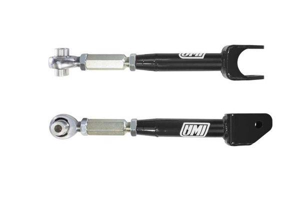 UMI's 2542 rear lower trailing links are the high-performance way to stiffen the flimsy factory GM rear suspension on your 6th Gen Camaro. These arms feature race quality rod ends along with a chromoly on-car adjuster and high strength tubular construction. Installed, these arms Improve suspension stiffness and handling while providing easy on-car alignment capability.