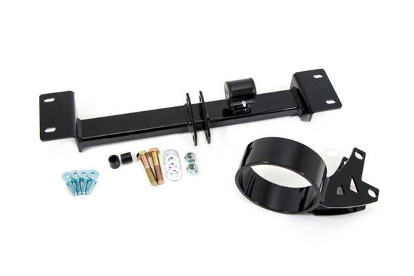 P/N 2201AS is a replacement crossmember mount for torque arm P/N 2201 or upgrade for P/N 2200. It features a remove drive shaft loop and includes all mounting hardware. Designed for vehicles running stock exhaust or Kook long tube headers, it also fits other tight fitting long tube headers and y-pipe systems.