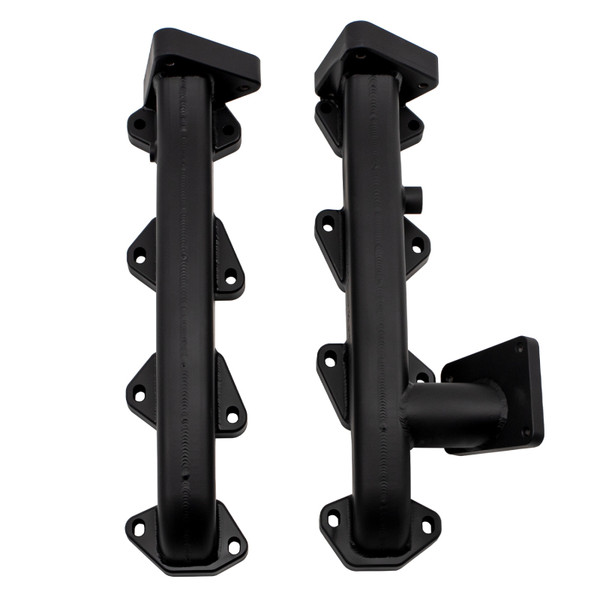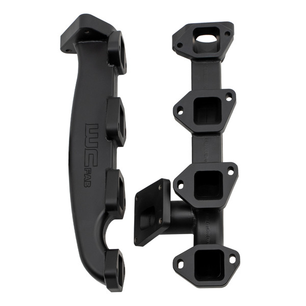WCFab's 2017-2025 L5P Duramax Billet Exhaust Manifolds replace the restrictive factory cast parts with high-strength, TIG-welded high-flow billet steel components. These manifolds are exhaust port gasket matched and internally divided for optimal flow with OEM or ported cylinder heads. Outlet locations allow full compatibility with OEM style up pipes and are designed to be paired with WCFab's 2" Stainless High-Flow Up Pipes (sold separately) for optimized performance. Fully compatible with vehicle emissions system, these L5P Manifolds include the necessary sensor port and EGR riser flange. Includes new gaskets, ARP 12PT fasteners, and assembly lube for easy install (up pipe fastener kits sold separately). Finished in Black Ceramic Coat rated for 1800 deg F.