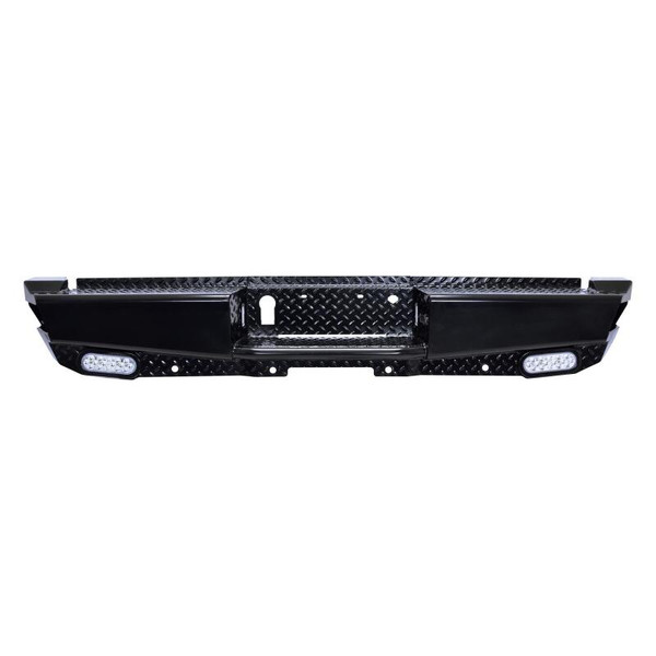 "Stand out from the Competition" with the all new HDX Bandit Rear Bumper from Westin. Built to compliment the style, precision, and durability of the matching HDX Bandit Front Bumper, this all new "off-road style" rear bumper, is clearly a cut above. Unlike the competition, which features an overlapping two piece design and an ugly weld which can warp the metal and is prone to rust, the new HDX Bandit Rear Bumper features an extremely clean, one piece design. The stamped diamond plate step surface is constructed of 11 gauge plate steel and features a welded inner structure for maximum strength. A unique "corner step" design provides extra wide step area to allow easy access to bed and cargo area. HDX Bandit Rear Bumper includes hardware, mounting brackets, flush mount LED license plate lights and two standard LED back up lights. Fully compatible with blind spot monitors and parking sensors, and can also accommodate an OEM hitch. HDX Bandit Rear is designed for heavy duty performance and extended life that is backed by a 3 year warranty with a black powder coat finish. The new HDX Bandit Rear Bumper is truly in a class by itself.