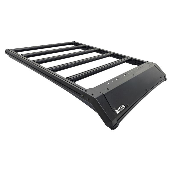 Introducing the all-new Westin Mesa Roof Rack, the ultimate companion for adventure enthusiasts and outdoor explorers! Crafted with precision engineering using high-quality extruded aluminum. This premium material offers unparalleled strength, durability, and corrosion resistance, making it the perfect choice for outdoor enthusiasts seeking a reliable and long-lasting roof rack. The multi-purpose cargo management system of the Westin Mesa Roof Rack is designed with flexibility in mind. Its 2.5in. x 1.5in. adjustable crossbars allow you to customize the setup according to the size and shape of your cargo. It features a removable 16-gauge aluminum wind deflector panel and 11-gauge aluminum visor side frames that serves a dual purpose. First, the wind deflector enhances aerodynamics by redirecting airflow, reducing drag, and minimizing wind noise during your travels. Enjoy a quieter and more fuel-efficient journey, all while maintaining a sleek and stylish appearance. Second, removing the wind deflector panel reveals a convenient light mount channel. This innovative design feature allows you to easily install auxiliary lighting to illuminate your path during nighttime adventures or low-light conditions enhancing your visibility and safety. The Mesa Roof Rack is built to last and features an electrostatic base coat for superior corrosion resistance, in combination with a durable textured black powder coat finish. All Mesa Roof Racks come complete with all necessary hardware to provide a hassle-free installation, while providing a full 3-Year warranty. Whether you're planning a weekend camping trip, a cross-country road adventure, or simply need extra storage space for your gear, this roof rack is the perfect solution.