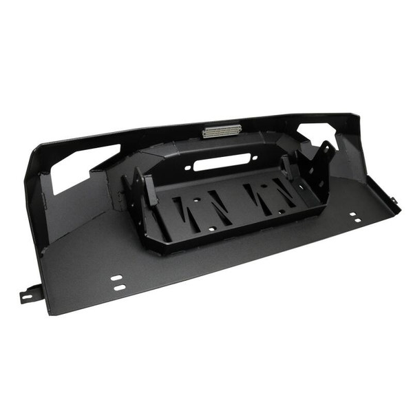 The Pro-Series Mid Width Front Bumper from Westin has a great looking and highly functional design. The distinctive low-profile bumper design retains the OEM bumper factory styling, while adding a winch capable platform engineered to accommodate 8,000-12,000 lb. synthetic rope winches with a hawse fairlead. The recessed hawse fairlead helps to achieve proper approach angles. It features large winch area access holes for easier operation, and provides two additional recovery/mounting points. To give you even more visibility, the Pro-Series fits an optional single row 20” LED light bar (sold separately). This heavy-duty bumper upgrade is built to last, constructed of a stout 10-gauge steel outer shell, with a beefy heavy-duty 4-gauge center section for easy installation. This design features a durable textured black powder coat finish with an e-coated base coat, providing long lasting corrosion protection from the elements, and is backed by a 3-year warranty. The Pro-Series Wid Width Front Bumper from Westin comes complete with all mounting brackets and hardware.