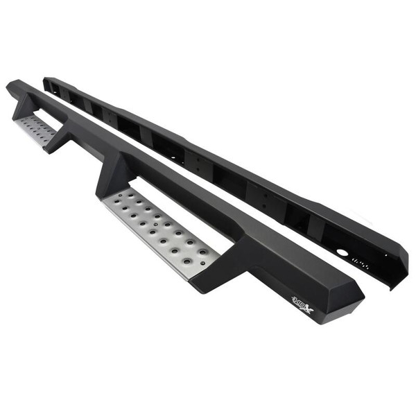 Westin's HDX Stainless Drop Nerf Step Bars are built with corrosion-resistant, textured black painted stainless steel designed to last under the toughest of conditions. With 1-piece construction, these nerf step bars provide over 2 added inches of toe/heel step area than our competitors and fit tight to the vehicle's rocker panel for a solid fit and rugged look. HDX Stainless Drop Nerf Step Bars include stainless steel step pads. Step plates are rust resistant and provide maximum traction. Bolt-on installation with no drilling is required. Includes mount kit.