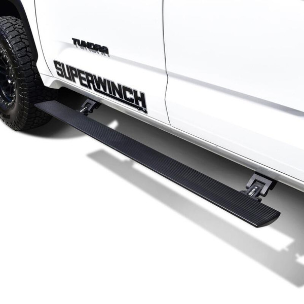 Introducing the all-new Westin Pro-e Power Running Boards, a superior upgrade that combines the functionality and appearance of your Truck, Bronco, Jeep or SUV. The Pro-e Power Running Boards are designed with a practical feature that automatically deploys when the vehicle's door is opened. This allows for easy entry and exit. When the door is closed, the running boards smoothly retract, seamlessly integrating with the vehicle's body and maintaining its sleek appearance.Equipped with two waterproof IP68 rated motors per side, these running boards are engineered for durability and reliability in any weather condition. The integrated LED lights illuminate the 6-inch wide, durable aluminum step surface, ensuring enhanced visibility and safety. Whether it's day or night, you can confidently step onto these running boards with their impressive weight capacity of up to 300 lbs. per side.The Pro-e Power Running Boards are constructed from corrosion-resistant aluminum and finished with a durable textured black powder coat. The included vehicle-specific mounting brackets and hardware guarantee a seamless installation process, ensuring a perfect fit for your vehicle.