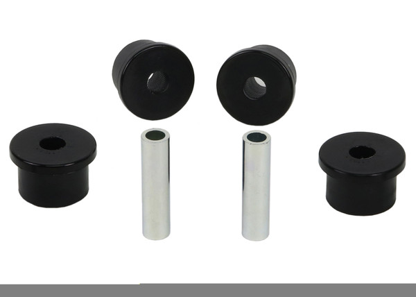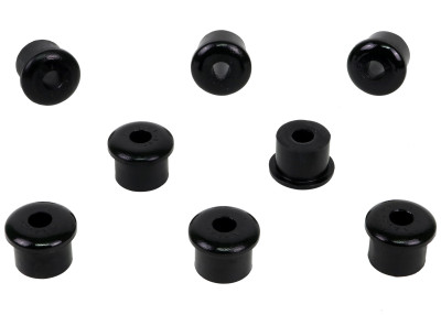 A critical service item for any leaf sprung vehicle. High kilometres and heavy load carrying causes excessive wear on rubber bushings. Whiteline's signature black bushings are made tough and offer outstanding abrasion resistance, high load bearing capability (4WD's, utes and towing), flexibility, increased tensile strength and chemical resistance to oil, grease, ozone and weathering.