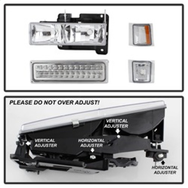 xTune 92-94 Blazer Full Size Corner/LED Bumper Headlights Chrome HD-JH-CCK88-LED-AM-C-SET - 5069559